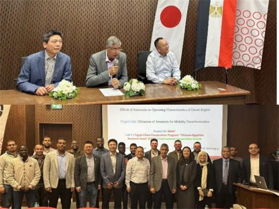 研讨会上围绕氨氢混合系统进展和清洁燃料燃烧进展两个分主题展开。在交流报告环节,中方与会者作了题为《船用发动机低温排气条件下纳米催化剂强化氨重整制氢特性研究》、《氨氢燃料基础燃烧特性和化学动力学研究》、《氨氢发动机的燃烧与排放特性研究》和《氨氢零碳混合动力系统的能量管理策略研究》的主题报告;埃方与会者分别作了《低排放氨氢燃烧发电新技术》、《羰基化合物影响柴油机性能和碳烟形成机理研究》和《柴油机天然气燃烧的最新进展》等主题报告。