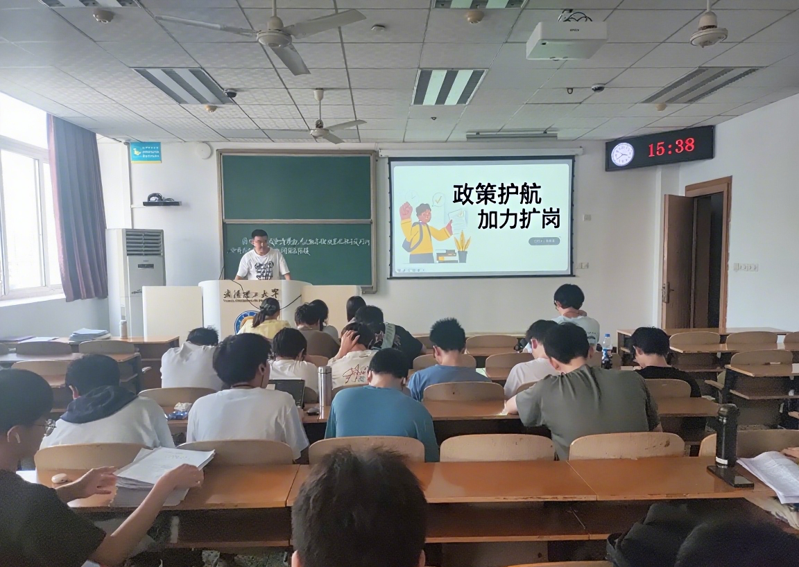 2025年6月20日,能源与动力工程专业2403班于航海楼609教室召开“政策护航 加力扩岗”主题班会。此次班会由班级团支书陈锦嵩主持,全班同学悉数到场,共同聚焦国家就业政策,探讨未来职业发展路径。
