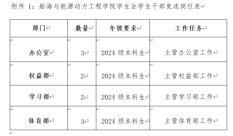 2.竞聘报名:有意竞聘的同学,根据个人情况认真填报竞聘个人简历即2025-2026 学年*欧美a片 第五届学生会部门负责人竞聘报名表(见附件2),并完成学生会发展规划提案(见附件3)。