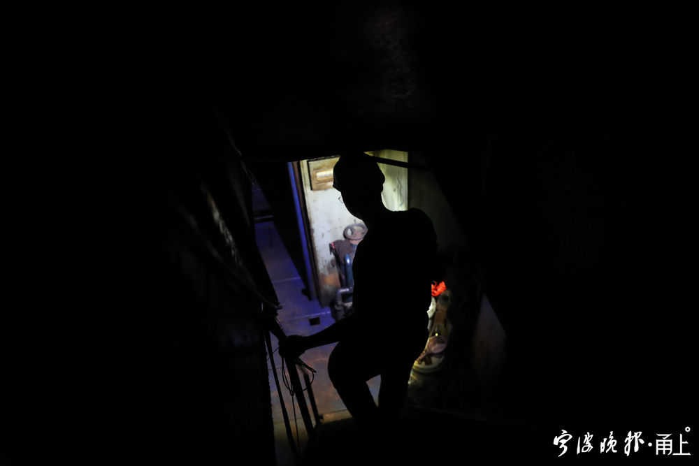 除了面对高温的“烤验”,验船还要面临爬上踩下的危险。机舱相当于渔船的“心脏”,是检查的重中之重,但这里光线差,狭窄的空间里暗藏“杀机”,磕磕碰碰是常事,扭伤脚也不少见。2018年,方小虎就曾在下机舱的过程中不慎跌落,造成十级伤残,对此,熊金玲心疼不已,耿耿于怀。方小虎养好伤之后又回到了船检一线,看着丈夫对验船工作割舍不下,熊金玲唯有默默支持。